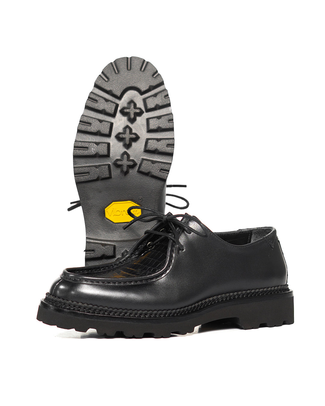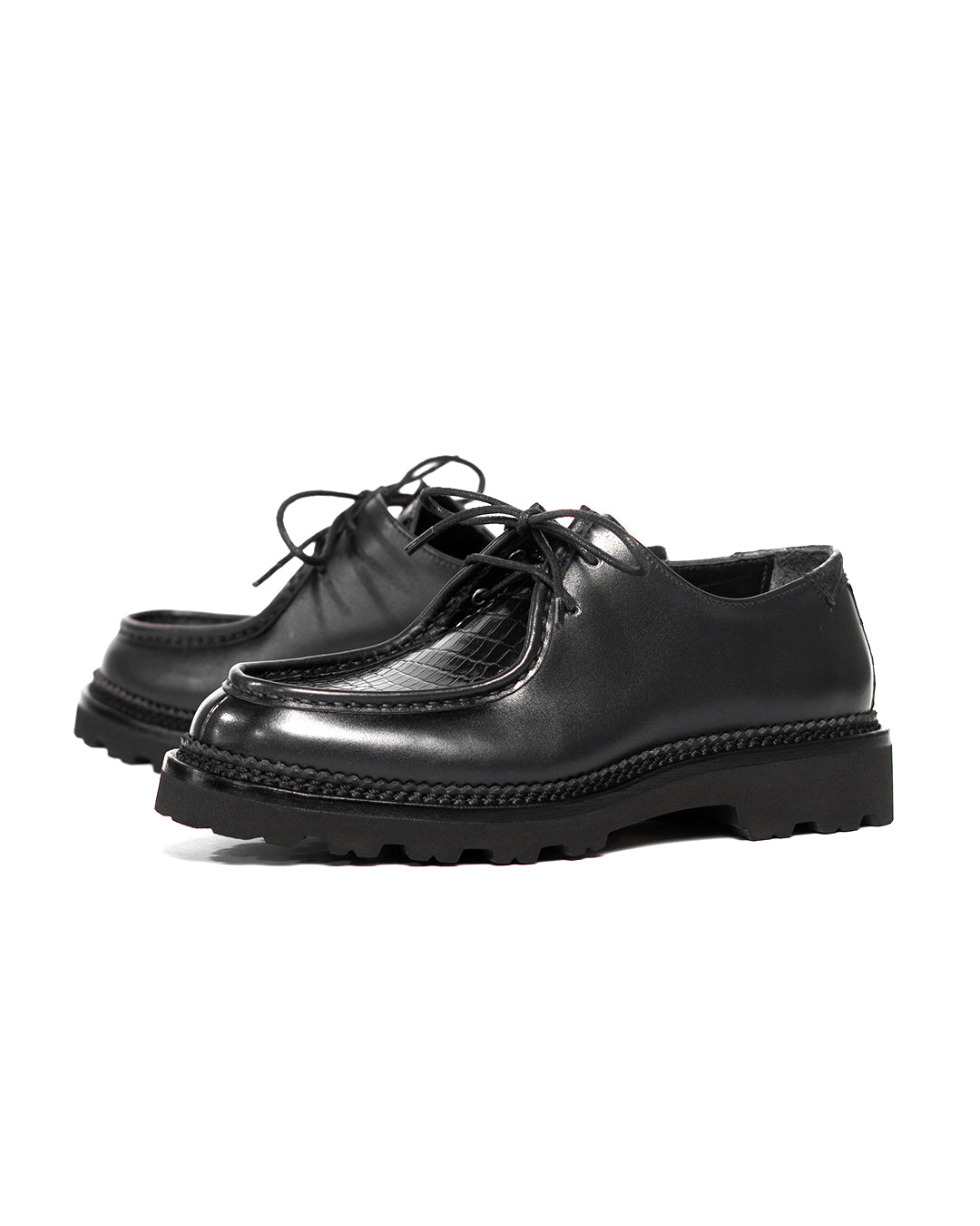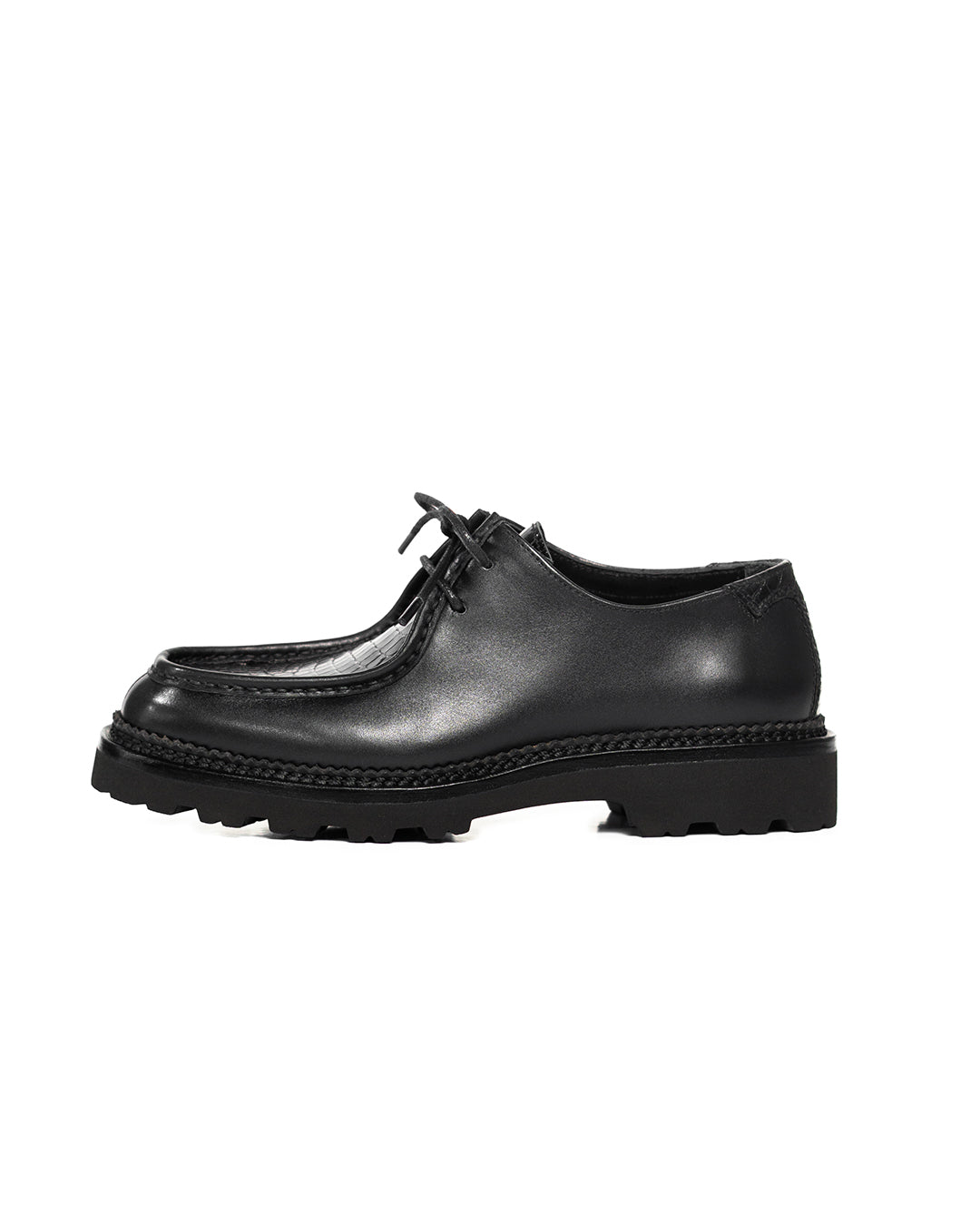#SagaraTyrolean crafted with Chateaubriand calf leather from French Tanneries, Du Puy, combined with Baby Crocodile Porosus leather on the apron and backstay. Baby Porosus has that fine, small-scale pattern that gives a luxurious and unique texture, blending nicely with the smooth satin finish of the calf.
